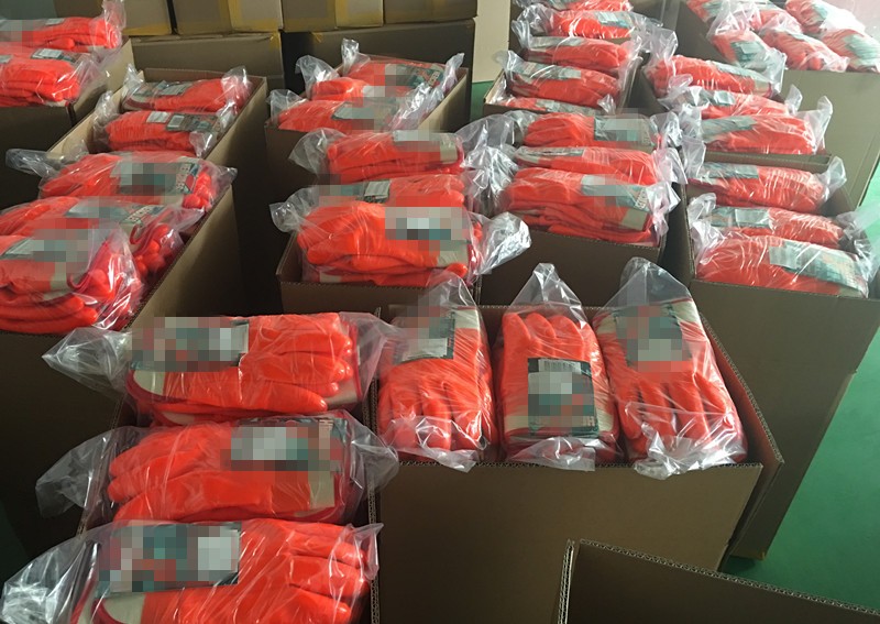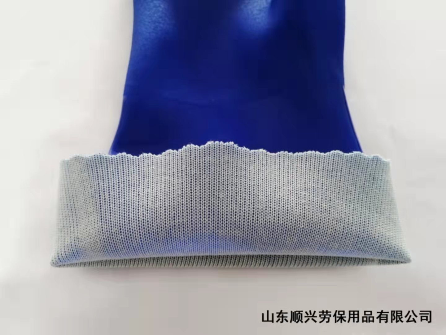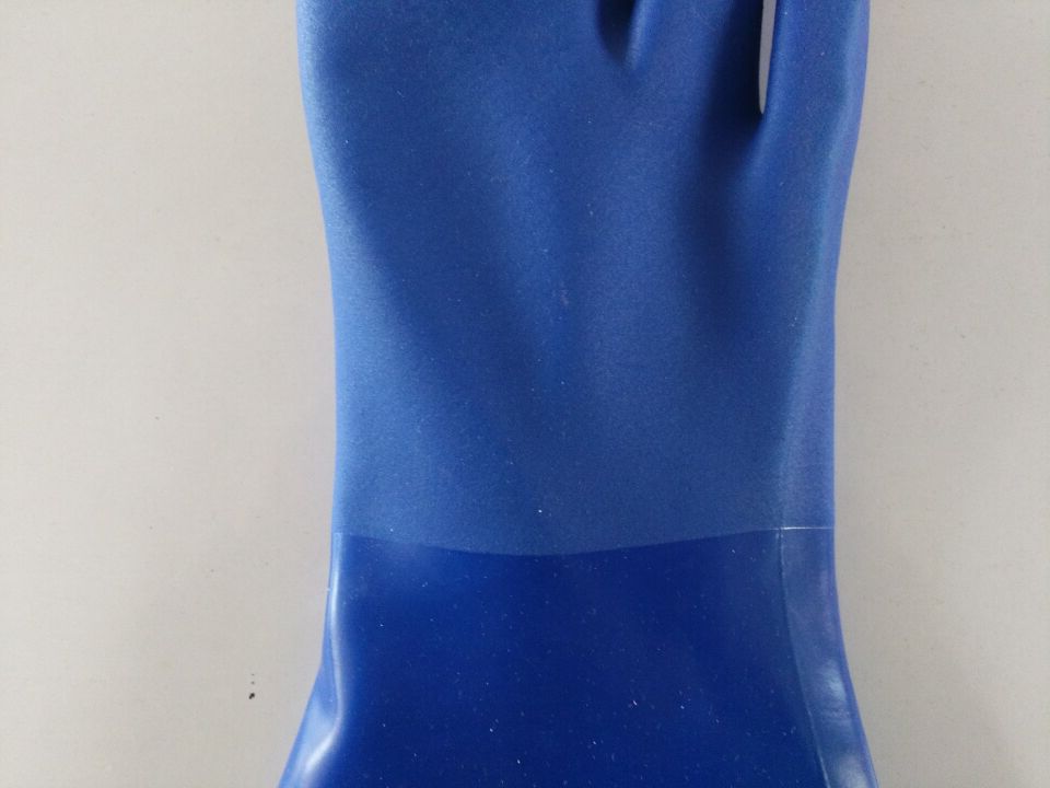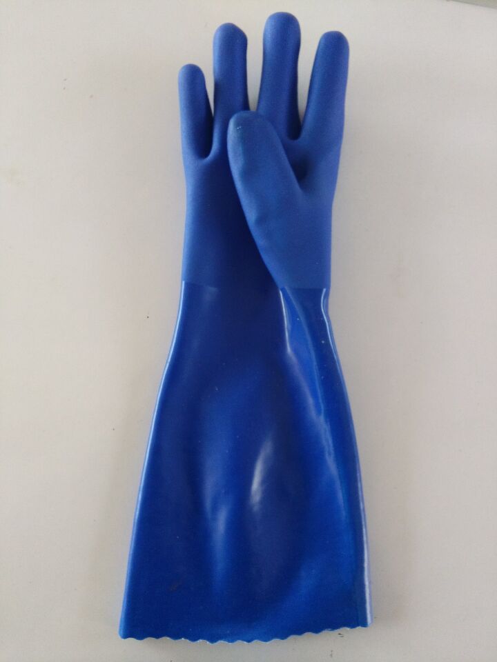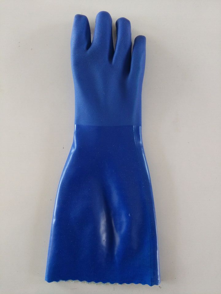 Guantes de trabajo de PVC anti agua jersey liner 35cm doble inmersión y acabado arenoso