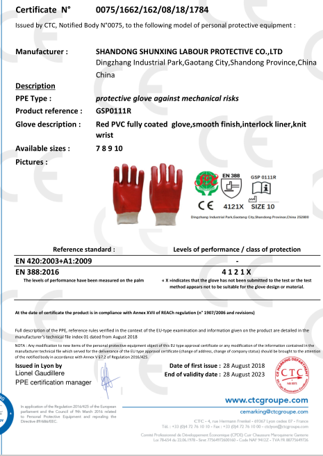 Guantes de pvc rojo K / W acabado liso, guantes de lino de algodón 100% de muñeca de punto, guantes anti-aceite se pueden utilizar en todos los campos. Es suave. Es con lino de algodón, muy cómodo. Puede absorber el sudor.